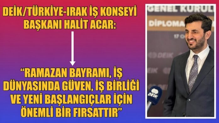 DEİK/Türkiye-Irak İş Konseyi Başkanı Halit Acar, Ramazan Bayramı dolayısıyla bir kutlama mesajı yayımladı. Ramazan Bayramı’nın, toplumsal dayanışma, paylaşma ve birlik duygularını pekiştirdiğini belirten Acar, bayramların aynı zamanda ekonomik ve ticari ilişkilerde de güven ortamını güçlendiren özel dönemler olduğuna dikkat çekti.