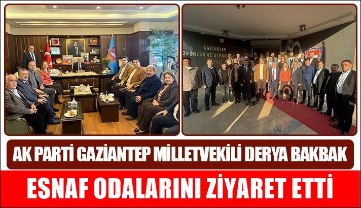 AK Parti Gaziantep Milletvekili Derya Bakbak, Şehitkamil Belediye Başkanı Av. Umut Yılmaz, AK Parti Şehitkamil İlçe Başkanı İsmail Güler, İlçe Kadın Kolları Başkanı Av. Yasemin Karaca, İlçe Gençlik Kolları Başkanı Yakup Beşe ve ilçe teşkilatı üyeleriyle birlikte Gaziantep’teki üç önemli esnaf odasını ziyaret etti.