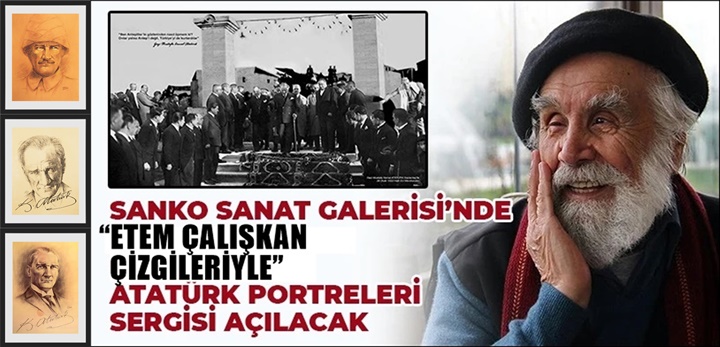 “Etem Çalışkan Çizgileriyle” Atatürk Portreleri Sergisi SANKO Park AVM üçüncü katta bulunan SANKO Sanat Galerisinde 23 Ocak Cuma günü saat 17.30’da ziyarete açılacak.
