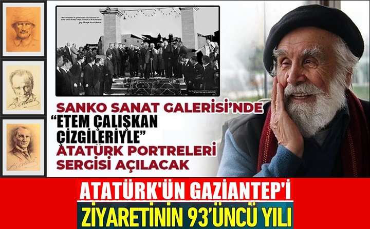 Büyük Önder Gazi Mustafa Kemal Atatürk’ün 26 Ocak 1933 tarihindeki Gaziantep’i ziyaretlerinin 93’üncü yıl dönümü etkinlikleri kapsamında “Etem Çalışkan Çizgileri ile Atatürk Portreleri” sergisi, 23 Ocak Cuma günü SANKO Sanat Galerisi’nde açılacak.