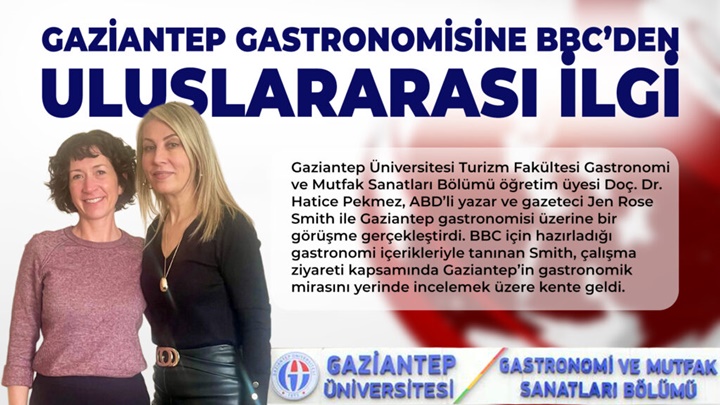 Gaziantep Üniversitesi (GAÜN) Turizm Fakültesi Gastronomi ve Mutfak Sanatları Bölümü öğretim üyesi Doç. Dr. Hatice Pekmez, ABD’li yazar ve gazeteci Jen Rose Smith ile Gaziantep gastronomisi üzerine bir görüşme gerçekleştirdi.