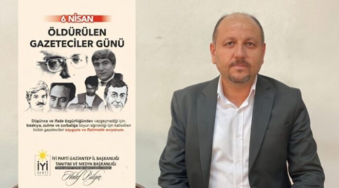 İYİ Parti Gaziantep İl Başkanlığı Tanıtım ve Medya Başkanı Halef Bilgiç, “6 Nisan Öldürülen Gazeteciler Günü” dolayısıyla bir mesaj yayımladı.