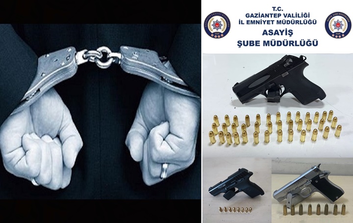 Gaziantep’te Asayiş Şube Müdürlüğü’ne bağlı Motosikletli Yunus Timleri tarafından yürütülen çalışmalar kapsamında 3 adet ruhsatsız tabanca ve 54 fişek ele geçirildi.