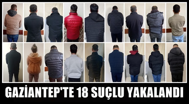 Gaziantep’in Nizip ilçesinde polis ekiplerince düzenlenen operasyonlarda, çeşitli suçlardan aranan ve haklarında yakalama kararı bulunan 18 şüpheli yakalandı.