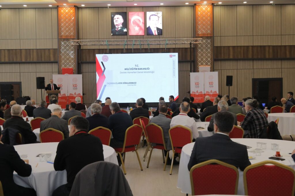 81 ilden destek hizmetleri şube müdürlüğünden sorumlu şube müdürlerinin bir araya geldiği toplantıda, Millî Eğitim Bakanlığı’na ait taşınmazların (özellikle Gaziantep Öğretmenevi ve Akşam Sanat Okulu gibi tesisler) daha etkin ve verimli şekilde kiralanmasına yönelik süreçler masaya yatırıldı.