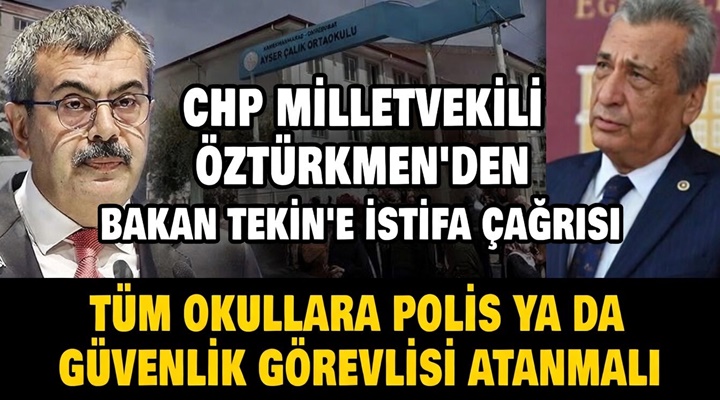 CHP Gaziantep Milletvekili Hasan Öztürkmen, Şanlıurfa ve Kahramanmaraş’taki okul saldırılarına sert tepki göstererek, “Ey Yusuf Tekin, Milli Eğitim’i tarikatların arka bahçesine çevireceğine, okulları mafyanın oyun alanı yapacağına, laik eğitime savaş açacağına, bilimsel eğitimin dibine dinamit yerleştireceğine herkese bir iyilik yap ve derhal istifa et. Okullar can derdinde Yusuf Tekin tarikat peşinde” dedi.