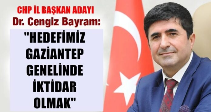 CHP Gaziantep İl Başkan Adayı Dr. Cengiz Bayram, 19 Ekim’de gerçekleştirilecek İl Kongresi’ne iddialı hedeflerle hazırlanıyor. CHP’nin Türkiye’de gerçekleştirdiği başarıyı Gaziantep’te de yakalamaları gerektiğini dile getiren Bayram, “Hedefimiz Gaziantep genelinde iktidar olmaktır” dedi.