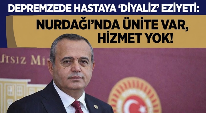 DEVA Partili Ertuğrul Kaya, Nurdağı Devlet Hastanesi’ndeki diyaliz ünitesinin bir an önce faaliyete geçirilmesini istedi. Depremzede hastaların diyaliz için çevre illere taşındığını belirten Kaya, “Bu hastaları il il, ilçe ilçe gezdirmek vicdansızlıktır” dedi.