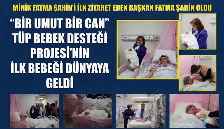 Gaziantep Büyükşehir Belediye Başkanı Fatma Şahin, “Aile Yılı” kapsamında hayata geçirilen “Bir Umut Bir Can” Tüp Bebek Desteği Projesi’nin ilk bebeği olan minik Fatma’yı ziyaret etti.