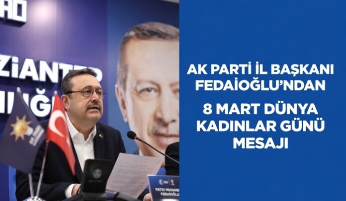 AK Parti Gaziantep İl Başkanı Fatih Muhaddis Fedaioğlu, 8 Mart Dünya Kadınlar Günü dolayısıyla bir mesaj yayımladı. Fedaioğlu mesajında, kadınların toplumun en güçlü yapı taşı olduğunu belirterek, kadınların emeği, azmi ve fedakârlıklarıyla Türkiye’nin geleceğinin şekillendiğini ifade etti.