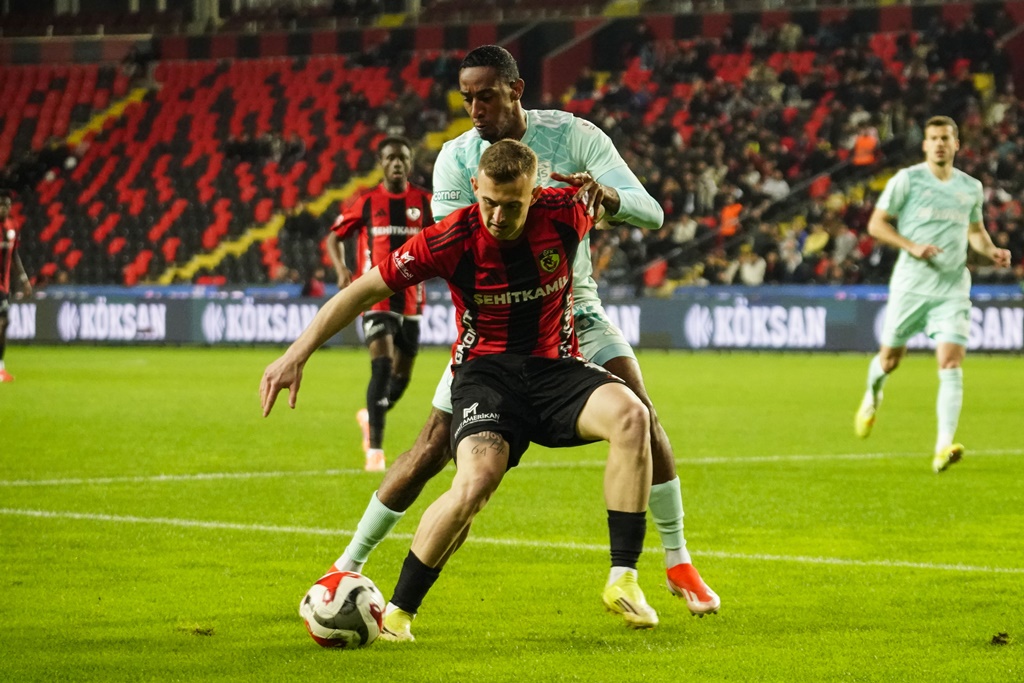 2’nci dakikada sağ kanattan gelişen Gaziantep FK atağında Sorescu’nun ceza sahasına yaptığı ortaya iyi yükselen Maxim’in kafa vuruşunda topu kaleci Bilal Bayazit kornere gönderdi.