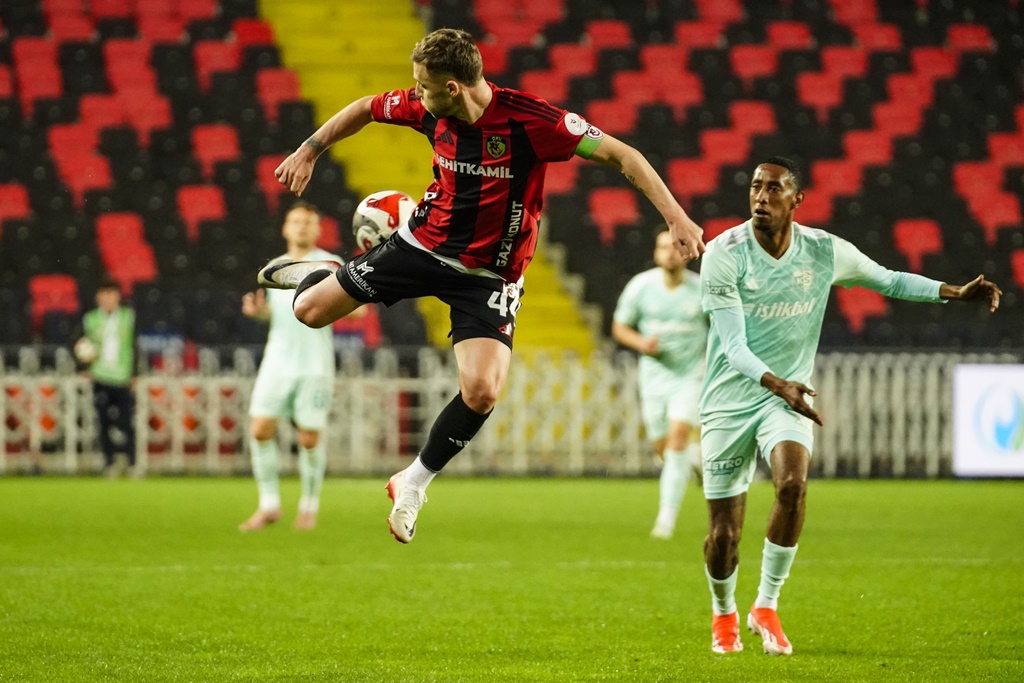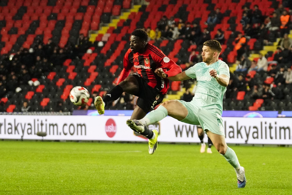 25’inci dakikada Gaziantep FK’da Sorescu’nun sağdan kullandığı taç atışında topla buluşan Kozlowski topu Bayo’ya gönderdi. Topun gelişine bekletmeden vuran Bayo’nun şutu ağlara gitti: 1-0