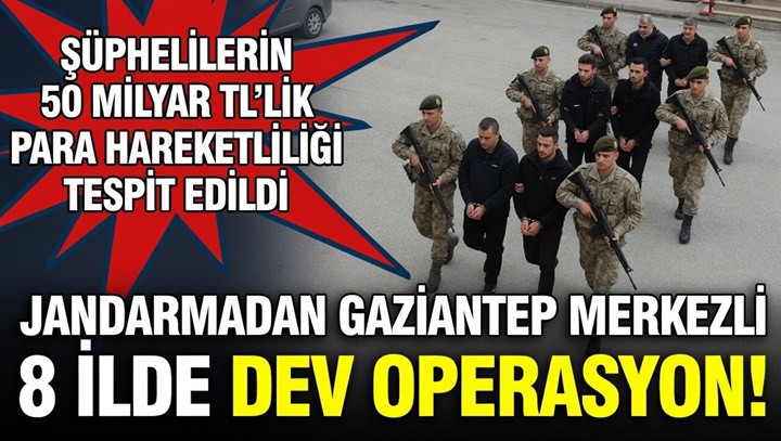 Gaziantep merkezli 8 ilde jandarma ekiplerince düzenlenen yasa dışı bahis ve suç örgütü operasyonunda gözaltına alınan 81 şüpheliden 70’i tutuklandı. MASAK incelemesi sonucu şüphelilere ait 254 banka ve 121 kripto hesabında toplam 50 milyar TL para hareketinin olduğu tespit edildi.