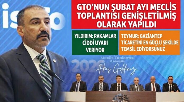 Gaziantep Ticaret Odası’nda (GTO) şubat ayı olağan meclis toplantısı, Meclis Başkanı M. Hilmi Teymur başkanlığında Yönetim Kurulu, Meclis, Disiplin Kurulu ve Meslek Komite üyelerinin geniş katılımıyla gerçekleştirildi.