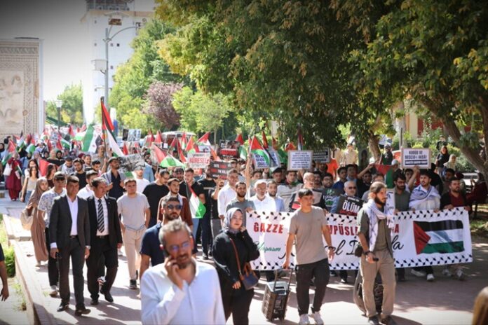 Gaziantep Üniversitesi (GAÜN) öğrencileri, Aksa Tufanı’nın 2. yıl dönümünde Filistin’e destek amacıyla yürüyüş gerçekleştirdi. Öğrenciler, Gazze’de yaşanan soykırıma dikkat çekti ve İsrail aleyhine sloganlar attı.