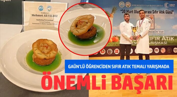 Gaziantep Üniversitesi (GAÜN) Gastronomi ve Mutfak Sanatları Bölümü öğrencisi Mehmet Ali Yıldız “sıfır atık” konseptiyle düzenlenen gastronomi yarışmasında finale kalarak ikinci oldu.