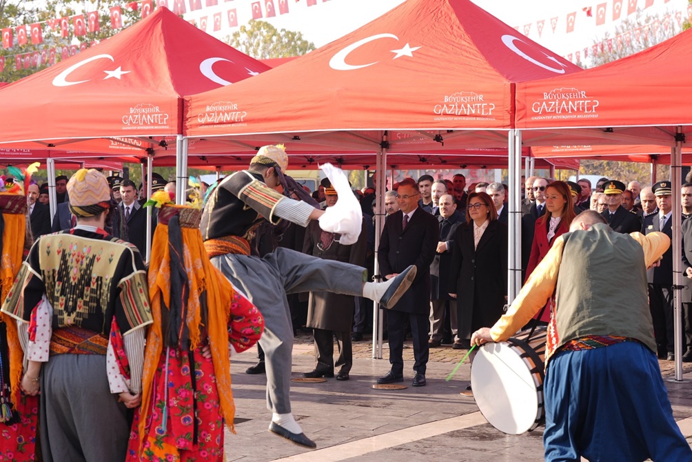 Tören, İstiklal Marşı’nın okunmasıyla başladı. Atatürk anıtına çelenk bırakılmasıyla devam eden törende günün anlam ve önemini anlatan şiirler okundu. Tören, Gaziantep Valisi Kemal Çeber’in Türk Bayrağı’na ‘Gazilik Nişanesi’ takması ile devam etti.