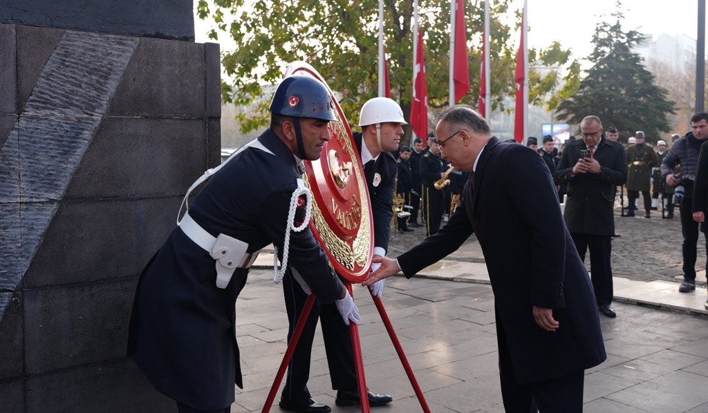 Tören mangası tarafından saygı atışı yapılmasının ardından protokol üyeleri, Şehitler Abidesi’ne karanfil bıraktı ve dualar edildi.