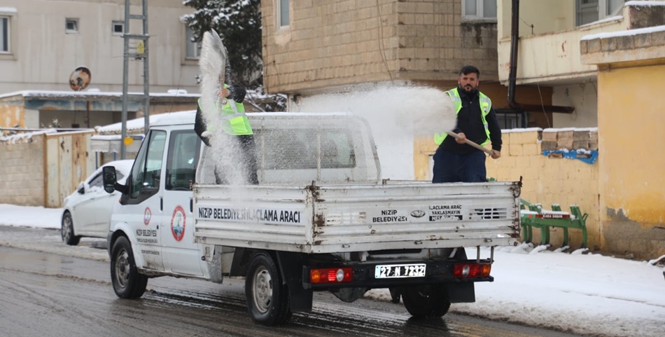 Çalışmaları yerinde takip eden Nizip Belediye Başkanı Ali Doğan, kış şartlarının günlük hayatı olumsuz etkilememesi için tüm birimlerin teyakkuz halinde olduğunu vurguladı.