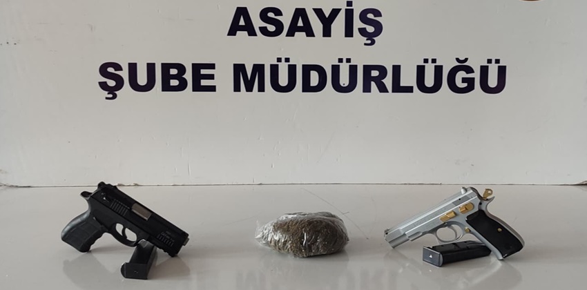 Şüphelilerin ev ve iş yerlerinde yapılan aramalarda: 2 adet ruhsatsız tabanca ve 84.66 gram uyuşturucu madde ele geçirildi.