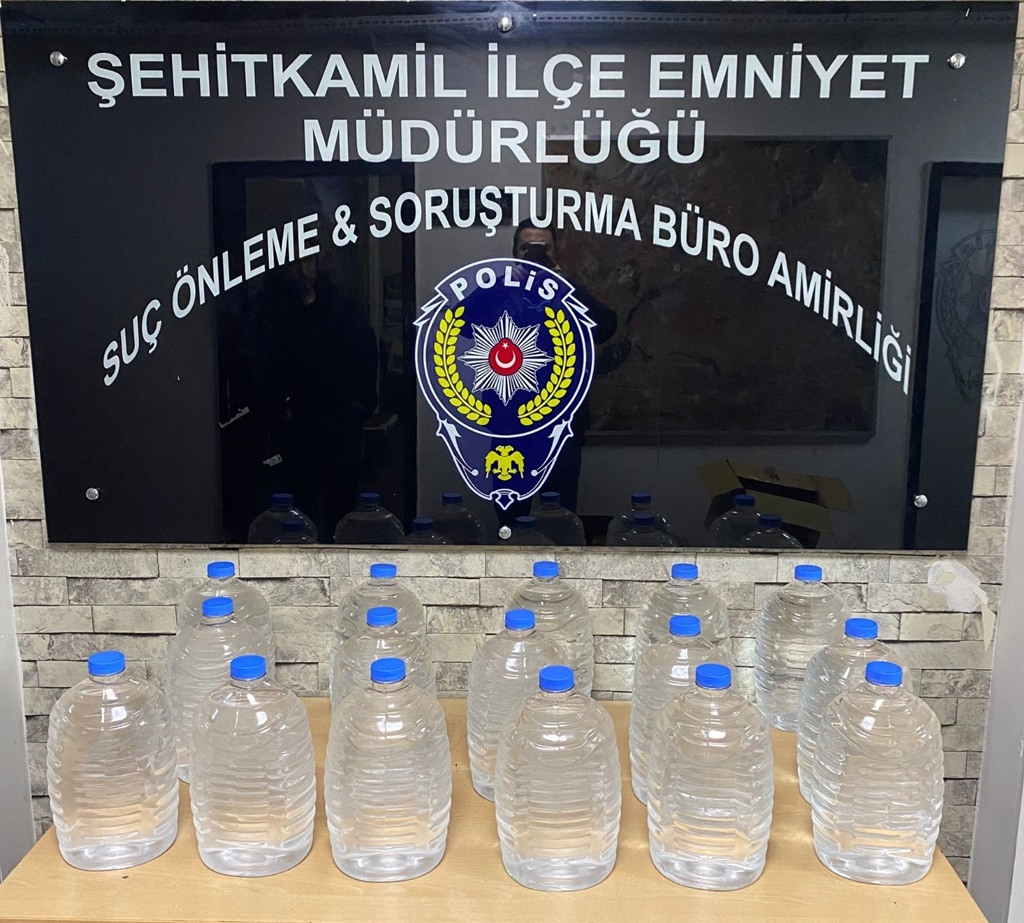 Gaziantep İl Emniyet Müdürlüğü’nden yapılan açıklamaya göre; Şehitkamil İlçe Emniyet Müdürlüğü ekiplerince yapılan çalışmalar sonucu sahte alkol satışı yapıldığı tespit edilen bir adrese operasyon düzenlendi. Adreste polis ekiplerince yapılan aramada pet şişeler içerisinde toplam 80 litre sahte alkol bulundu.