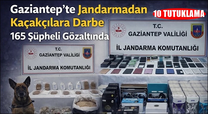 Gaziantep’te jandarma ekipleri, uyuşturucu ve kaçakçılıkla mücadele kapsamında Ocak ayı boyunca gerçekleştirdiği operasyonlarda 165 şüpheliyi yakaladı. Bu şüphelilerden 10’u tutuklanırken, çok sayıda uyuşturucu madde, kaçak eşya ve tarihi eser ele geçirildi.