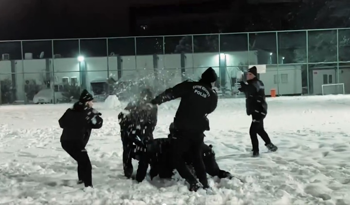 Gaziantep İl Emniyet Müdürlüğünün sosyal medya hesabından “Karın keyfi birlikte güzel. Çevik Kuvvet ve Özel Harekat personelimizden kısa bir mola” ifadesiyle paylaşılan görüntülerde Çevik Kuvvet ve Özel Harekat polislerinin birbirlerine kartopu attığı gülümseten anlar yer aldı.
