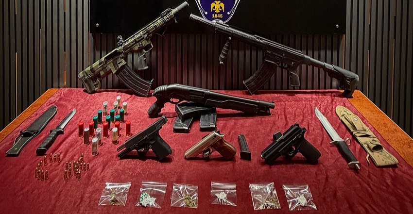 Şahinbey İlçe Emniyet Müdürlüğü ekiplerince bir mahallede S.M.D. ve B.T. isimli şüphelilerin evlerinde yapılan aramada ise: 3 ruhsatsız tabanca, 3 ruhsatsız tüfek, 3 parça halinde 3 gram esrar, 25 tabanca fişeği, 15 tüfek kartuşu, 4 tabanca şarjörü, 5 tüfek şarjörü ve 2 kesici alet ele geçirilerek 2 şüpheli gözaltına alındı.
