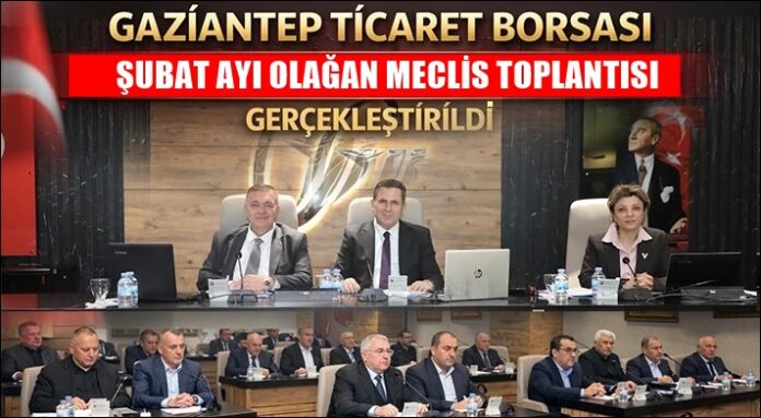 Gaziantep Ticaret Borsası (GTB) Şubat Ayı Olağan Meclis Toplantısı, Meclis Başkanı Ahmet Tiryakioğlu başkanlığında, Yönetim Kurulu Başkanı Mehmet Akıncı ile meclis ve disiplin kurulu üyelerinin katılımıyla yapıldı.
