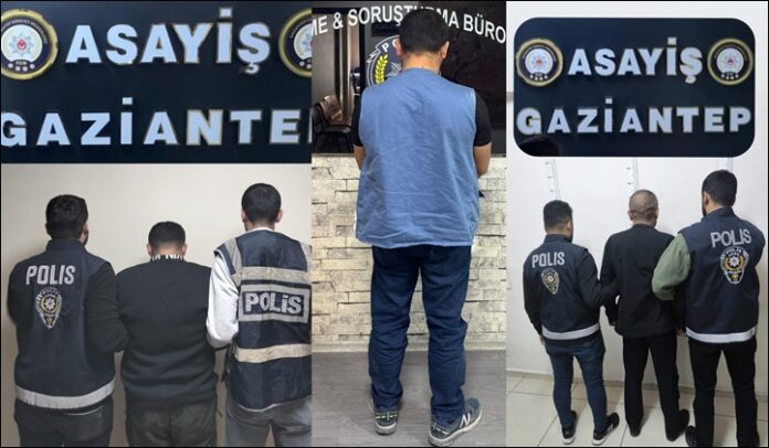 Gaziantep’te yağma, yaralama, uyuşturucu ve hırsızlık suçlarından haklarında kesinleşmiş hapis cezası bulunan firari 3 hükümlü polis ekiplerince düzenlenen operasyonlarla yakalandı.