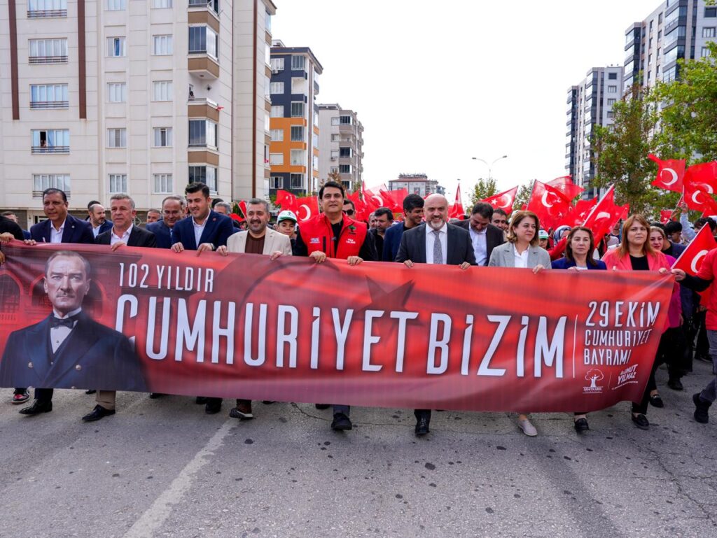 Kutlamalar kapsamında Naci Topçuoğlu Caddesi üzerinde bulunan Pet Park 1 önünden başlayan yürüyüş, ellerinde Türk bayrakları taşıyan öğrenciler, vatandaşlar ve protokol üyeleriyle birlikte Tuncay Kara Caddesi’ne kadar devam etti. Cadde boyunca marşlar eşliğinde yürüyen kortej, Cumhuriyet’in 102. yılına yakışır bir birlik ve beraberlik tablosu oluşturdu. Yürüyüş güzergâhı boyunca caddeyi dolduran katılımcılar, ellerindeki bayraklarla görsel bir şölen oluşturdu. “10. Yıl Marşı”, “İzmir Marşı hep bir ağızdan söylendiği yürüyüşte, vatandaşlar balkonlardan alkışlarla korteje eşlik etti. Ardından Fatih Toker ve orkestrası sahne aldığı konserle, gençler bayram coşkusunu doyasıya yaşadı.