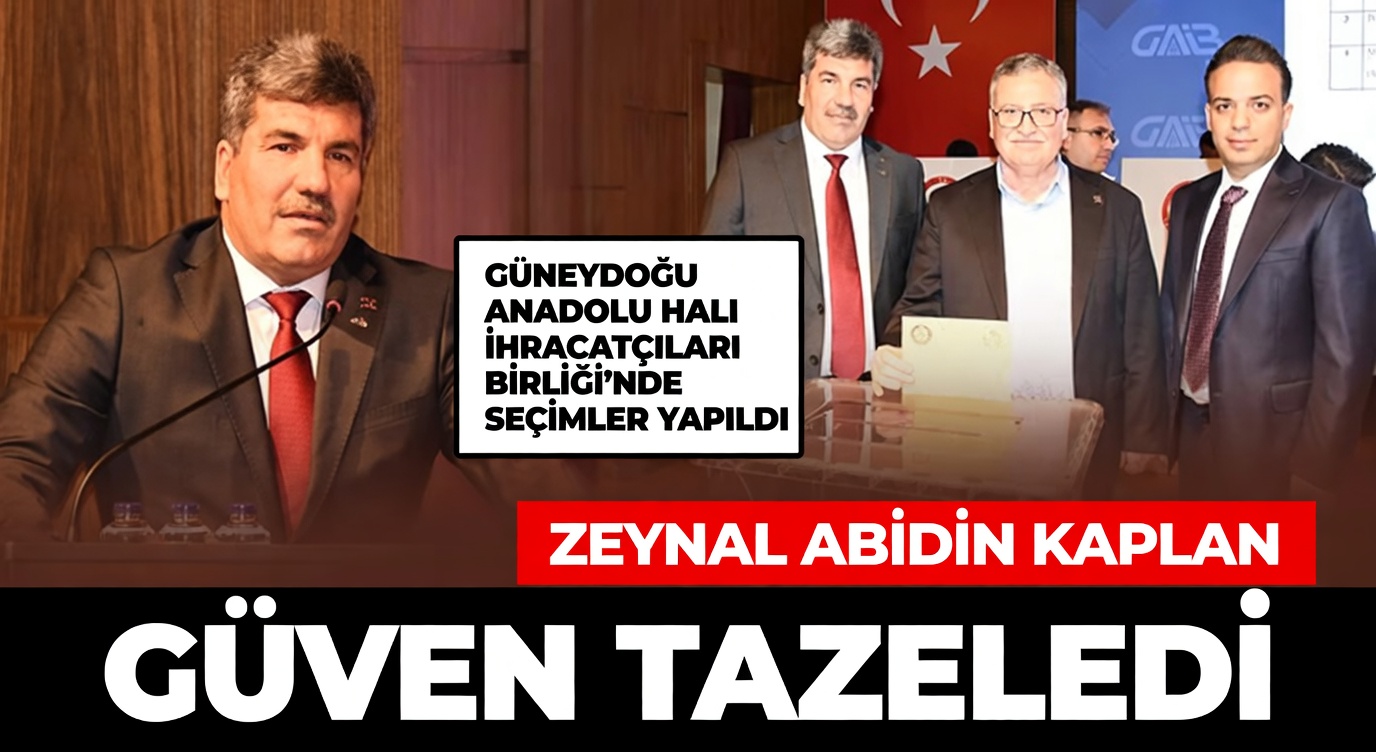 Güneydoğu Anadolu Halı İhracatçıları Birliği’nin (GAHİB) seçimli olağan genel kurul toplantısı yapıldı. Genel kurulda Zeynal Abidin Kaplan güven tazeledi ve oybirliğiyle yeniden Birlik Başkanı seçildi.
