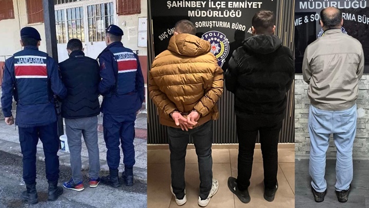 Gaziantep’te jandarma ve polis ekiplerinin Şahinbey ve Şehitkamil ilçelerinde düzenlediği operasyonlarda, “hırsızlık” ve “yağma” gibi çeşitli suçlardan haklarında kesinleşmiş toplam 49 yıldan fazla hapis cezası bulunan 3 firari ve ruhsatsız tabanca taşıyan 1 şüpheli yakalandı.