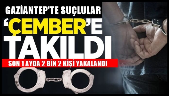 Gaziantep’te İl Jandarma Komutanlığı JASAT ekipleri tarafından Aralık ayı boyunca sürdürülen “Çember” operasyonlarında çeşitli suçlardan aranan 2 bin 2 şüpheli yakalandı. Şüphelilerden 118’i tutuklanarak cezaevine gönderildi.