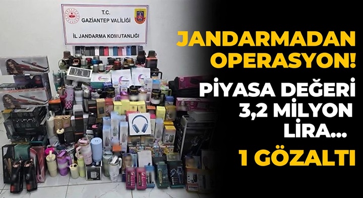 Gaziantep’te jandarma ekiplerince Şehitkamil ilçesinde düzenlenen kaçakçılık operasyonunda piyasa değeri 3,2 milyon lira olan kaçak ürün ele geçirildi, bir şüpheli gözaltına alındı.