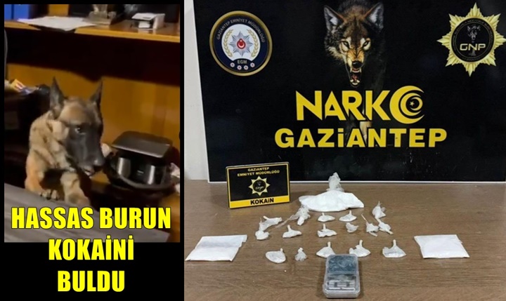 İş yerinde yapılan aramada, hassas burunlu narkotik köpeğinin tepki vermesi üzerine ofis masasının içerisinde 198 gram kokain ve bir adet hassas terazi bulundu, 2 kişi gözaltına alındı.