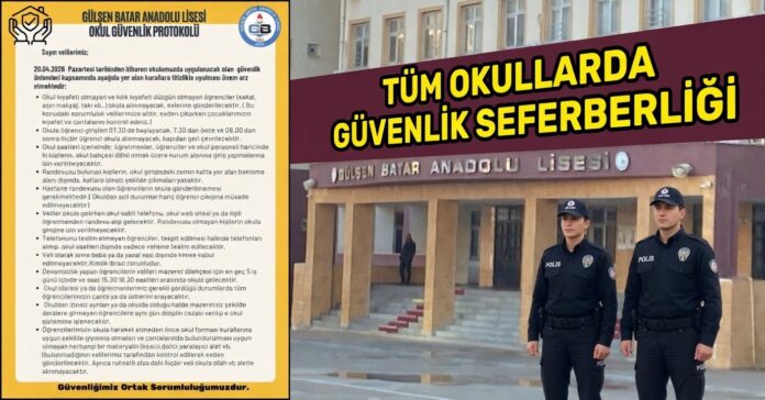 Gaziantep’teki Gülşen Batar Anadolu Lisesi’nin kentteki diğer okullar gibi 20 Nisan 2026 Pazartesi günü itibariye uygulayacağı yeni güvenlik protokolü şöyle: