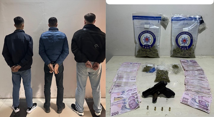 Gaziantep’te operasyon: Esrar, paralar ve tabanca ile yakalandılar!