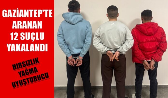 Gaziantep’te polis ekipleri çeşitli suçlardan aranan 12 kişiyi yakaladı