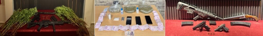 Gaziantep İl Emniyet Müdürlüğü’nden yapılan açıklamaya göre, Şehitkamil ve Şahinbey İlçe Emniyet Müdürlüğü ekiplerince yürütülen çalışmalar kapsamında 605 gram sentetik kannabinoid, 425 gram uyuşturucu yapımında kullanılan madde, 17,52 gram metamfetamin, 16 kök hint keneviri, 4 ruhsatsız tüfek, 1 ruhsatsız tabanca, 1 kurusıkı tabanca, 40 fişek, 9 şarjör ve 1 adet hassas terazi ele geçirildi.