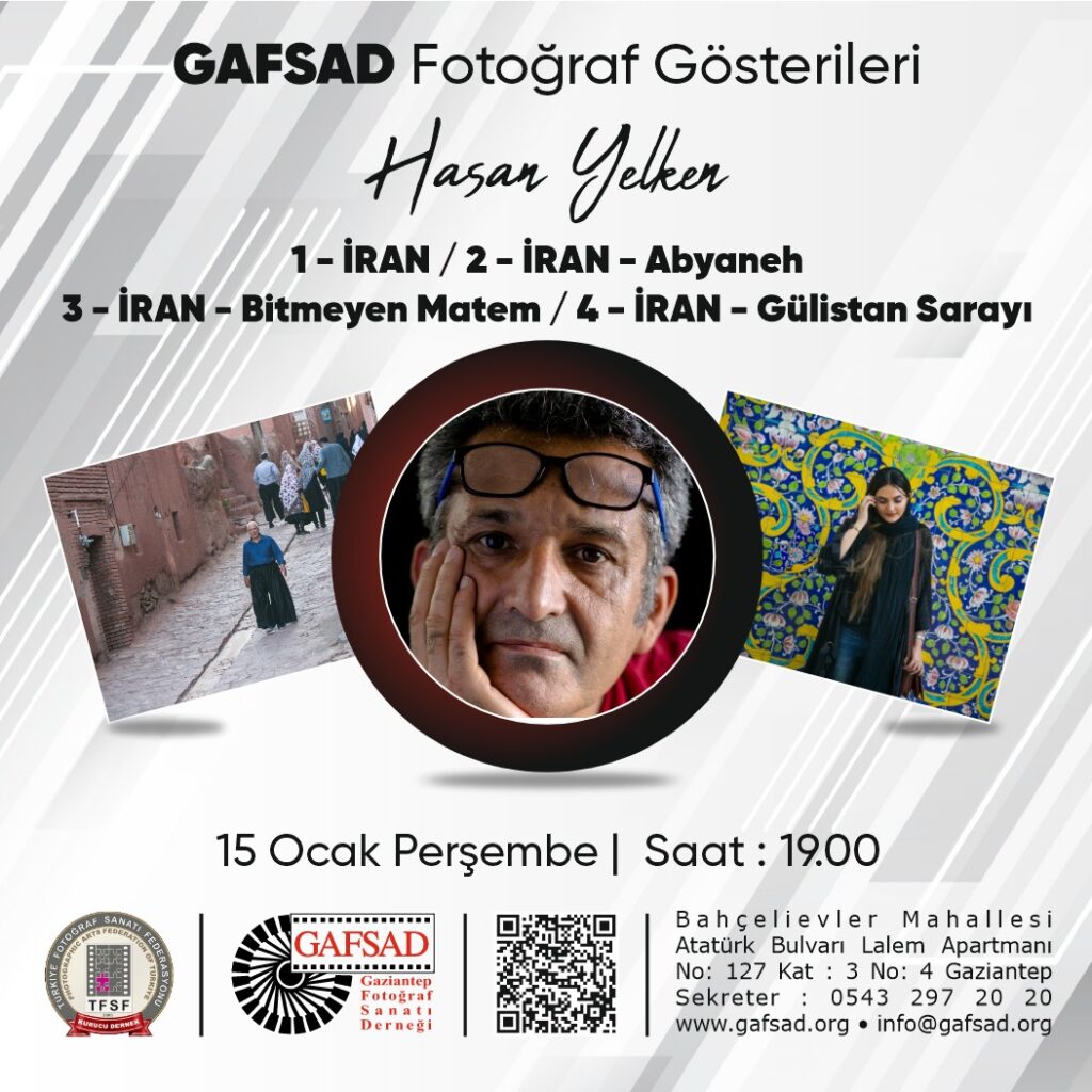 Gaziantep Amatör Fotoğraf Sanatçıları Derneği (GAFSAD), üyelerinden Hasan Yelken’in objektifinden çıkan etkileyici İran fotoğraflarını sanatseverlerle buluşturmaya hazırlanıyor. “İran” temalı fotoğraf gösterisi, 15 Ocak Perşembe günü saat 19:00’da GAFSAD Merkezi’nde gerçekleşecek.