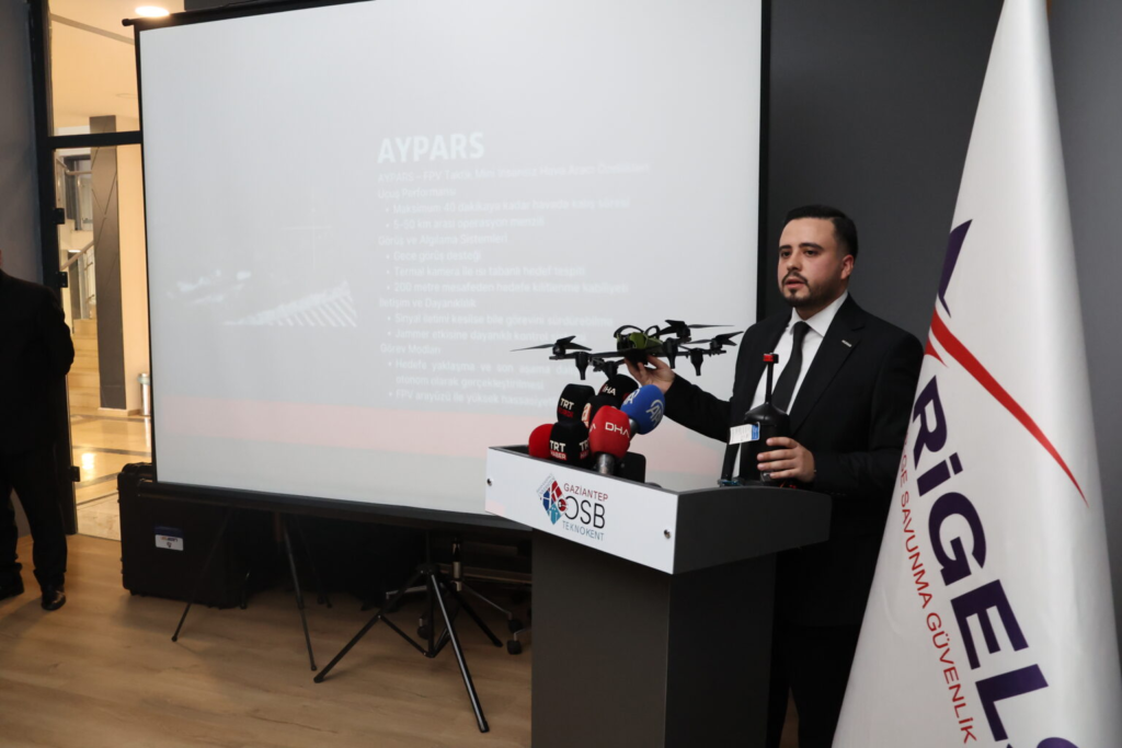 HKÜ lisans mezunu ve yüksek lisans öğrencisi Hazar Altaş tarafından kurulan ve Gaziantep OSB Teknokent’te faaliyetlerini sürdüren RİGELSAN; TÜBİTAK 1507 KOBİ Ar-Ge Başlangıç Destek Programı kapsamında yürüttüğü projeler biri yapay zeka tabanlı güç hatlı iletişim altyapısına sahip kablolu drone sistemi; sistem baz istasyonu ve jammer etkilerinden bağımsız çalışabilmesi, kesintisiz enerji alarak 5–7 saat havada kalabilmesi ve şebekeye bağlandığında 72 saate kadar uçuş süresi sunmasıyla öne çıkıyor. Aynı altyapı kullanılarak geliştirilen fiber optik kablolu FPV kamikaze drone ise 50 km menzile ulaşarak haberleşme ve görev icra edebiliyor.