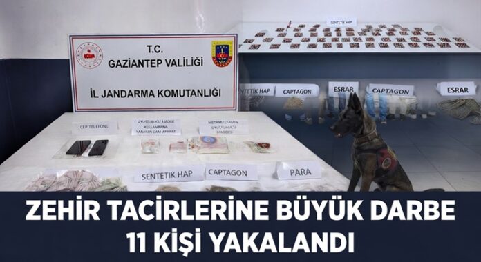 Gaziantep’in Şahinbey, Şehitkamil, Araban ve Oğuzeli ilçelerinde jandarma ekiplerince düzenlenen uyuşturucu operasyonunda gözaltına alınan 11 şüpheli tutuklandı.