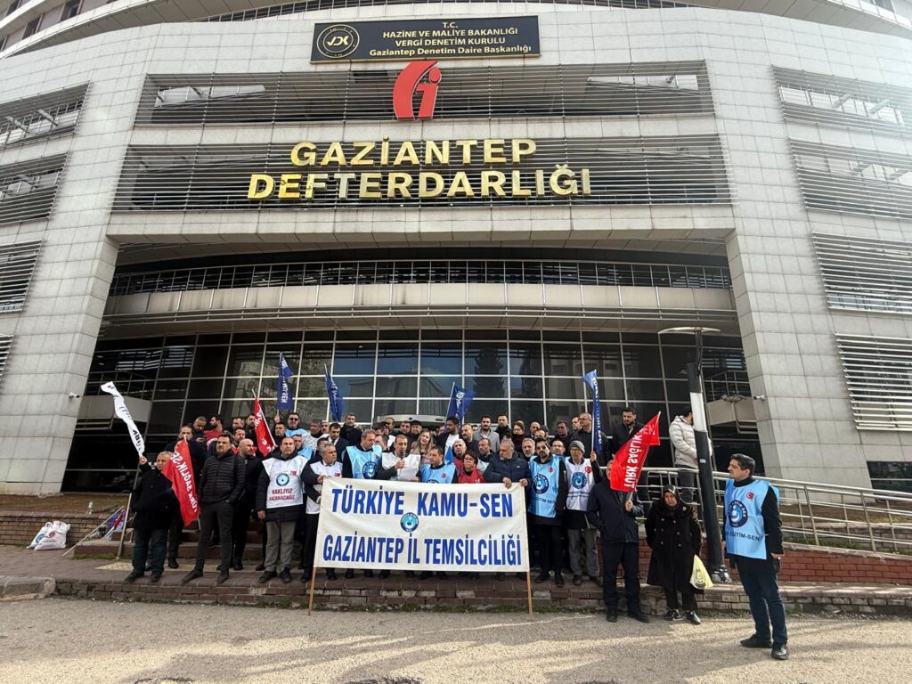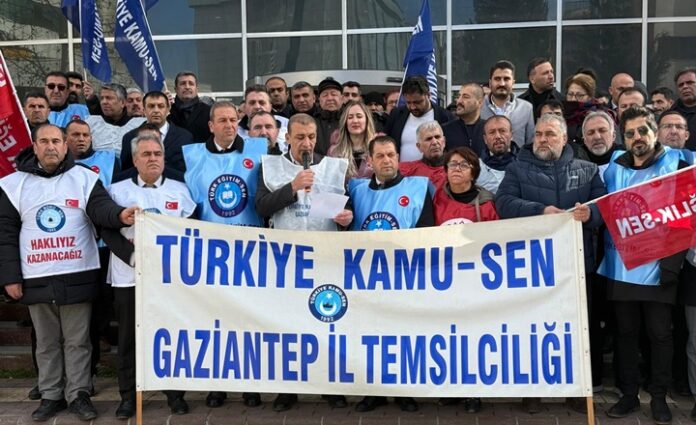 Gaziantep’te Kamu-Sen’e bağlı sendikalar, memur ve emekli maaşlarına yapılan artışların yetersizliğini protesto etmek amacıyla Gaziantep Defterdarlığı önünde basın açıklaması düzenledi.