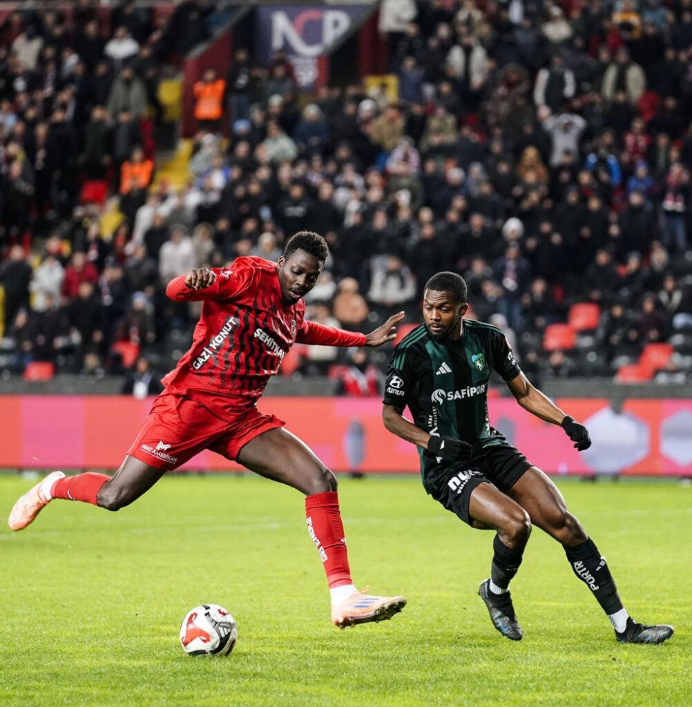 30’uncu dakikada Gaziantep FK’nın gelişen atağında ceza sahası dışında topla buluşan Maxim’in pasında topu önünde bulan Gassama’nın rakibini çalımladıktan sonra vuruşu kaleciden döndü. Pozisyonun devamında Camara’nın dokunuşunda top auta çıktı.