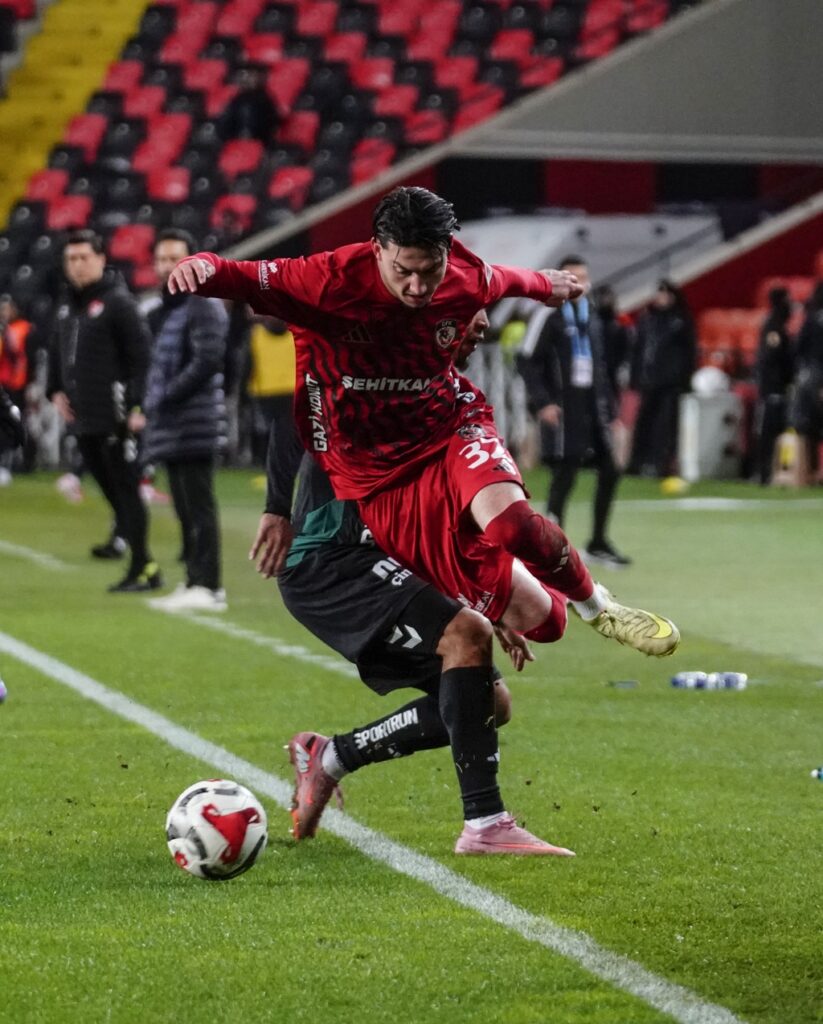 13’üncü dakikada yapılan VAR incelemesinin ardından Gaziantep FK’dan Tayyip Talha Sanuç, rakibine yönelik sert müdahalesi nedeniyle direkt kırmızı kart gördü.