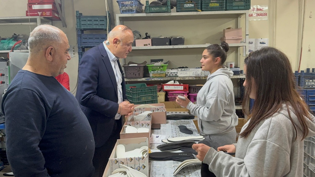 CHP Gaziantep Milletvekili Melih Meriç, Ayakkabıcılar Esnaf ve Sanatkârlar Odası Başkanı Mehmet Emin İnce ile birlikte Organize Sanayi Bölgesi’ndeki ayakkabı üretim tesislerini ziyaret etti, sektörün kanayan yaralarını yerinde gözlemledi.