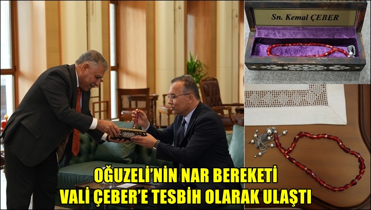Gaziantep’in Oğuzeli ilçesinin bereketi ve simgesi olan nar, anlamlı bir hediyeye dönüştü. Oğuzeli Belediye Başkanı Bekir Öztekin, Gaziantep Valisi Kemal Çeber’i makamında ziyaret ederek ilçenin en değerli ürünlerinden narın özel olarak işlendiği bir tesbih takdim etti.