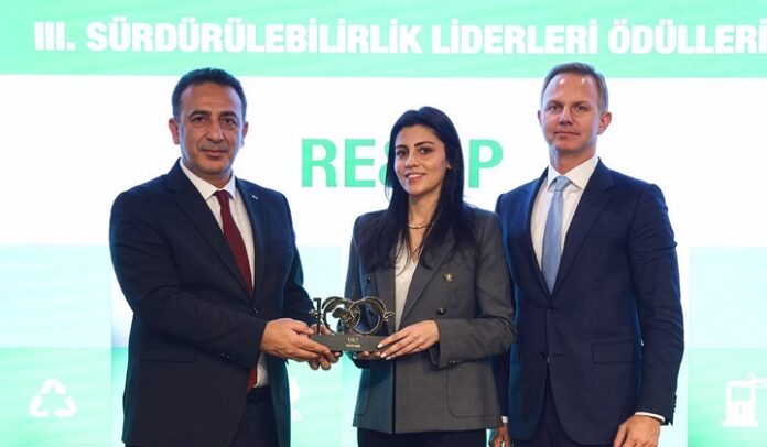 Sürdürülebilirlik alanında iyi uygulamalar geliştiren, dönüşüme öncülük eden kurum ve liderlerin değerlendirildiği ödüller, III. Sürdürülebilir Yüzyıl Zirvesi kapsamında düzenlenen törende sahiplerini buldu. Törende ödül, T.C. Çevre, Şehircilik ve İklim Değişikliği Bakanlığı İklim Değişikliği Başkanı Prof. Dr. Halil Hasar tarafından RE&UP Büyüme ve Stratejiden Sorumlu Direktörü Engin Mete ile Büyüme ve Stratejiden Sorumlu Kıdemli Yöneticisi Gözde Konukoğlu’na takdim edildi.