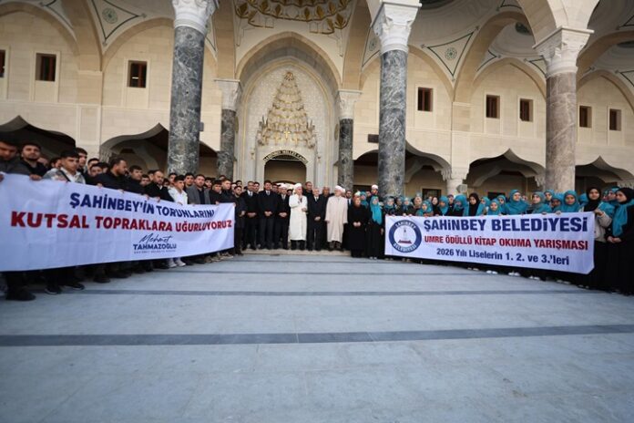 Gaziantep’te Şahinbey Belediyesi tarafından düzenlenen “Peygamber Efendimizin Hayatı” yarışmasında okullarında 1’inci, 2’nci ve 3’üncü olan 175 öğrenci, Umre’ye uğurlandı. Gaziantep Valiliği, Şahinbey Belediyesi, İl Milli Eğitim Müdürlüğü ve İl Müftülüğü’nün birlikte organize ettiği proje kapsamında öğrenciler, duygusal anlar yaşayarak kutsal topraklara yolcu edildi.
